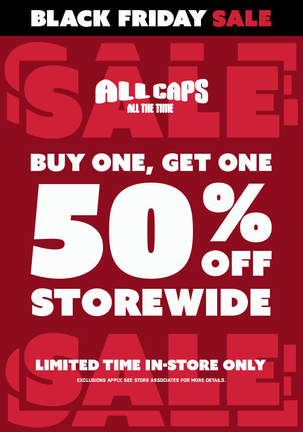 Promotion availability only in select US and Canadian stores 11/18/25-11/30/25 (11/30 Canada). MLB® Clubhouses, NHL Shop, NBA Stores, Morton Street, Buckeye Corner, Oklahoma Campus Store, Fan Outfitters, and Lids outlets are excluded store concepts. See a Lids Teammate for details for additional exclusions.